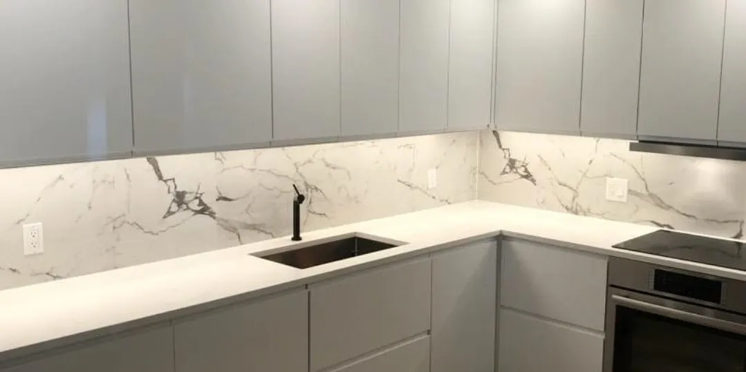 Full-Slab Backsplashes: Extend your countertop material seamlessly onto the walls with a full slab. This trend creates a clean, minimalist look while showcasing the beauty of natural stone or porcelain.